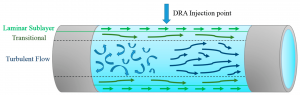 WPSD’s DRA (WPSD-003) is injected in crude oil and refined products pipelines, in order to reduce frictional pressure, drop followed by throughput increase. DRA is an excellent alternative for increasing the capacity of existing pipelines. Frictional pressure drop reduction due to DRA injection increases operational safety of all pipelines, especially old ones. It also leads to decrease in energy consumption and maintenance costs of equipment such as pumps and turbines. Some exclusive reasons and advantages of DRA implementation are described as bellow: